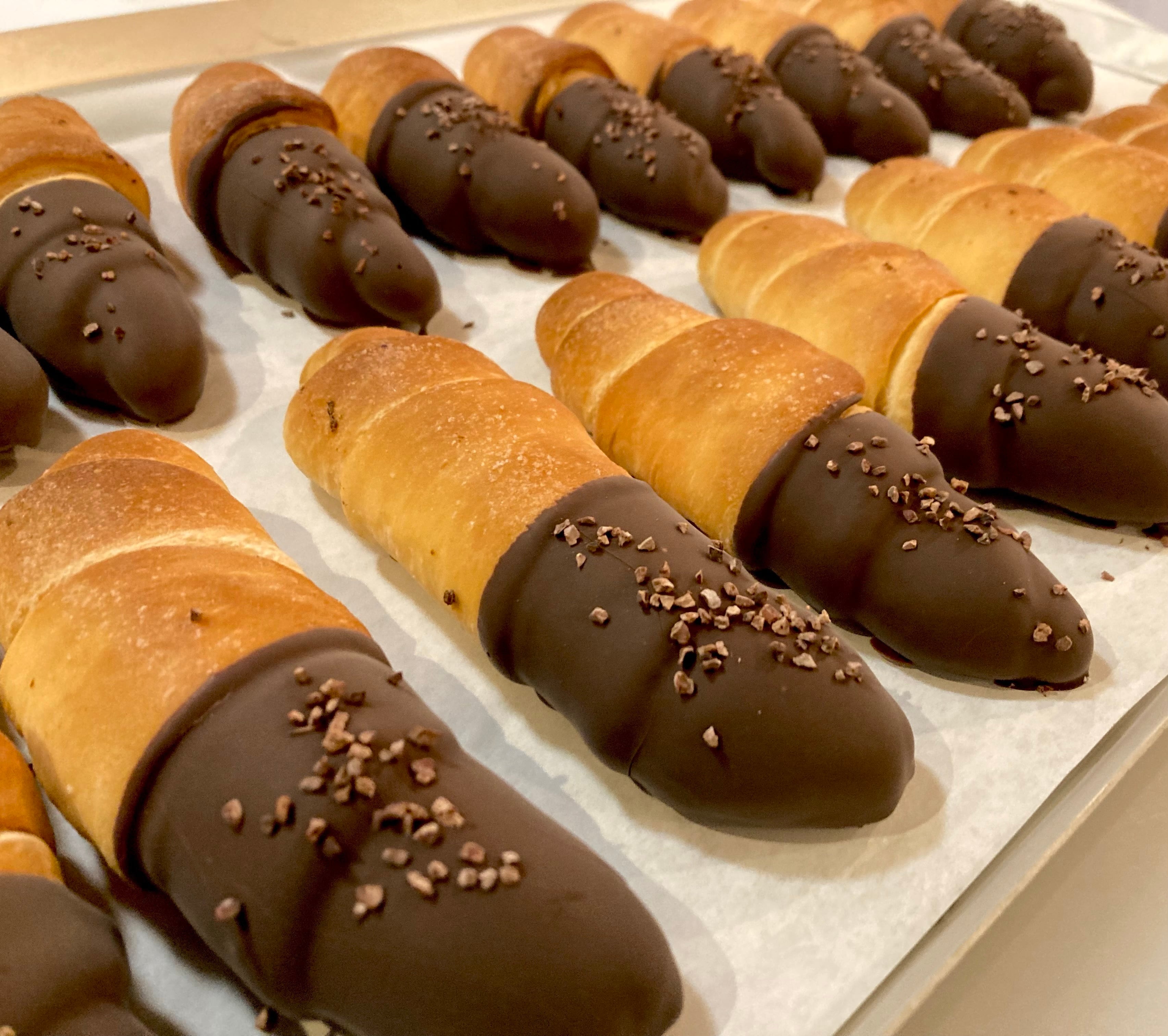 バターたっぷりの贅沢な塩パン☆にチョコレートがたっぷりかかった